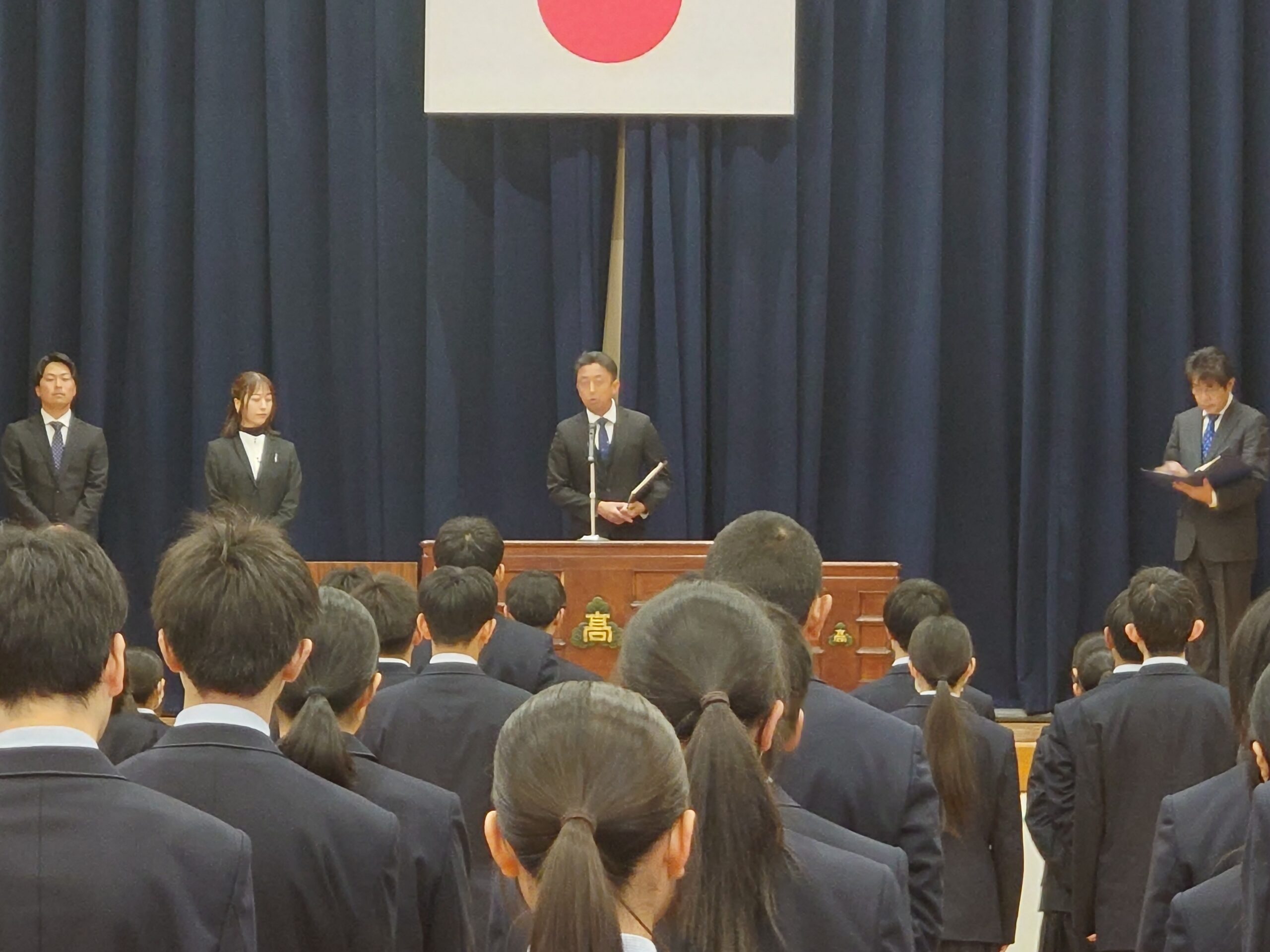 まず、新転任式が行われ、新たに5名の先生が赴任されました。今年度もより一層頑張ります!